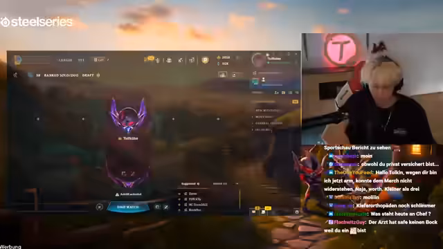 01:41:45Ein Spieler berichtet von einer 100% WinRate an diesem Tag, obwohl er jedes Mal 'einen Hard verloren' hat, was auf ein Problem mit dem Matchmaking hindeutet. Er wünscht sich, dass 'die Rioter einfach die AP zurück' bringen, die er durch schlechtes Matchmaking verloren hat. Die Frustration über das Spiel ist spürbar, insbesondere wenn er die Erfahrung, 'Enchant an Solo-Cue' zu spielen, als 'Hölle' beschreibt, da man 'nichts machen' kann. Er beklagt, dass er einem Teamkollegen zusehen muss, wie dieser 'viermal einfach in die Gegner reinrennt', und empfindet das Spiel als 'Durk-Cure'.