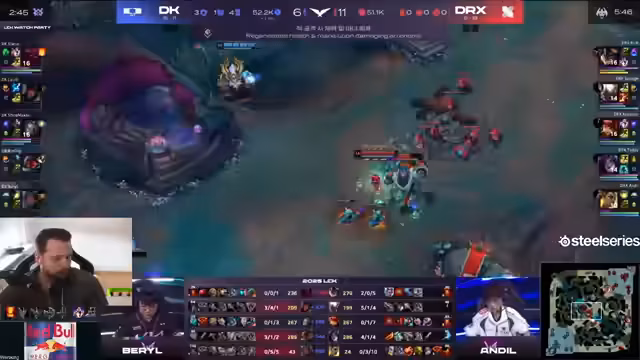 03:39:25Der Kommentator beschreibt den deutlichen Leistungsabfall von DRX, als 'Downfall' bezeichnet. Das Team scheint 'broken' zu sein, und die Playmaker wie 'Showmaker' scheinen nicht in der Lage, das Spiel zu kontrollieren. Ein entscheidendes Missverständnis zwischen Spielern führt zu einem kritischen Fehler, bei dem der gegnerische Spieler 'gepealed' wird. Der Kommentator vergleicht 'Endel' und 'Sponge', wobei 'Endel' den Kill bekommt, aber 'Sponge' anvisiert wird. Dies führt zu einer chaotischen Situation, bei der 'Lucid' eliminiert wird und 'Sponge' in eine missliche Lage gerät, was den Sieg für die Gegner 'RX' festigt. Die Leistung von 'Soulback' und 'Gold Equal' wird als 'komplett broken' angesehen.