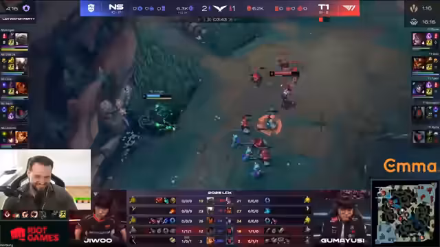 01:15:19Im zweiten Spiel verliert T1 nach einer sehr dominanten Leistung von Nongshim. Der Streamer analysiert die Gründe für den schnellen Kollaps, die unter anderem auf eine starke Performance von Ziggs und das Fehlen eines sicheren Raumes für Guma zurückzuführen sind. Er kritisiert die mangelhaße Leistung von T1 und formuliert sogar eine kontroversen Theorie über mögliche Spielmanipulationen (Matchfixing) im Kontext des T1 gegen Gen.G Spiels, um eine Storyline für zukünftige Duelle zu schaffen.