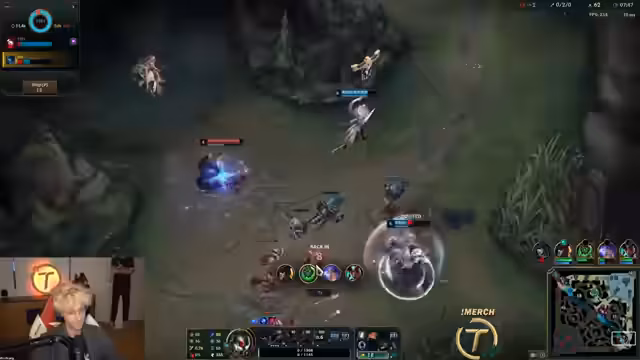 05:35:36Der Streamer erreicht eine starke Spätphase mit Orianna. Er hat mehrere Items wie Horizon Focus und Road of Ages gesammelt und baut auf starken Schaden und Ability Haste. Er überlegt, ob er in Deathcap oder weitere Items investieren soll, und entscheidet sich für Deathcap, um seine AP-Werte zu maximieren. Er bemerkt, dass Orianna in Solo-Q effektiv sein kann, auch wenn sie im Proplay als zu langsam gilt.