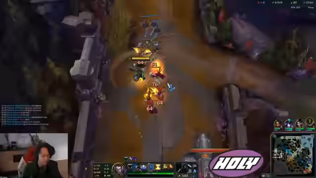 05:24:50Ein entscheidender Fight im Spiel wird detailliert analysiert. Der Streamer beschreibt, wie sein Mitspieler, Brücke, durch Phantom Dive in einen Fight eingreift. Er kritisiert die Kommunikation im Team, die fehlte, und erklärt, warum er selbst den Dive als sturköpfig empfand. Er geht auch auf das Champion-Matchup zwischen Camille und Pantheon ein, das er als sehr schwierig und unangenehm beschreibt, da Panthons Fähigkeiten Camilles Mechaniken gut kontern.