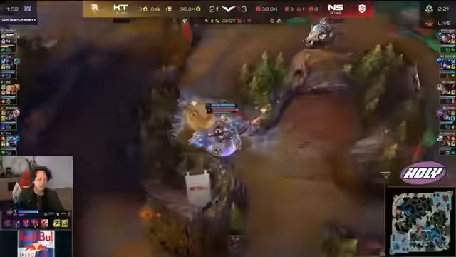 01:33:32Das Spiel verläuft für KT katastrophal, das Team kämpft mit einem großen Golddefizit und schlechtem Drafting. Kommentar deutet auf einen mentalen Zusammenbruch hin, besonders bei BDD. Eine schlechte Draft-Phase, bei der keine synergistischen Picks gefunden wurden, führt zu einer defensiven Position, die kaum Gegenangriffsmöglichkeiten bietet. Der Fokus liegt darauf, dass KT auf Jinx als letzte Hoffnung setzt, während der Gegner eine stärkere Spätspielkomponente hat.