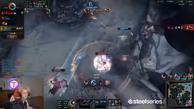 05:46:34Die Spieler diskutieren aggressives Vorgehen am Drake, wobei ein Spieler seine Ultimate für die nächste Welle aufsparen möchte. Es kommt zu einem schnellen Kampf, bei dem ein Spieler seine W-Fähigkeit nicht rechtzeitig einsetzen kann. Trotz eines Fehlers bei der Wave-Kontrolle wird die Top-Lane als nächste Option ins Auge gefasst. Die allgemeine Stimmung ist von Langeweile geprägt, da sich die Spielmuster seit Jahren wiederholen. Es wird über einen möglichen One-Shot an einem Gegner ohne Rüstung gesprochen, und die Spieler sind zuversichtlich, keine Kämpfe zu verlieren, da sie einen Reichweitenvorteil und eine starke Position haben. Die Gruppe plant, stets zusammenzubleiben, um ihre Stärke zu maximieren, obwohl die Gefahr besteht, dass Gegner ihre Ultimates gegen sie einsetzen könnten. Ein Teleportationsversuch wird diskutiert, um auf eine Bedrohung durch einen Gegner zu reagieren, wobei die Spieler sich gegenseitig decken und auf die Verfügbarkeit ihrer Fähigkeiten achten müssen.
