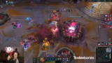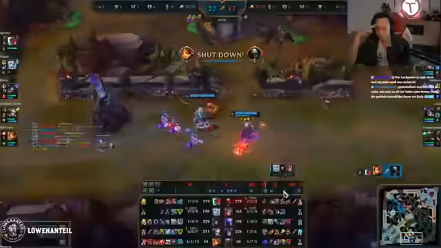 05:18:08Im späteren Spielverlauf, als das Spiel sehr knapp ist, überlegt das Team, wie man gegen den gegnerischen Nashor vorgehen kann. Die Idee ist, Druck auf den einzigen Champion mit Tempo auf der gegnerischen Seite auszuüben, indem man versucht, einen für Nashor anvisierten Gegner zu isolieren und zu eliminieren. Der Streamer denkt darüber nach, selbst mit Teleport zu reagieren, um ein 5-4-Spiel zu erzwingen, realisiert aber, dass er daran nicht gedacht hat. Die Situation gilt als äußerst prekär, da jeder Fehler tödlich sein kann.