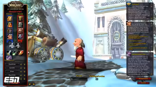 00:17:46Nach der eSports-Diskussion startet Tolkien World of Warcraft zum ersten Mal und erstellt einen Gnome-Hexenmeister namens 'Train Keen'. Er experimentiert mit Charakteranpassungen: Bärte, Haarfarben und Frisuren werden getestet, wobei er eine Glatze erwägt, aber sich letztlich für einen roten Bart und neutrale graue Haare entscheidet. Die Hintergrundgeschichte der Gnome nach dem Verlust ihrer Heimatstadt Gnomeregan wird kurz betrachtet. Tolkien entscheidet sich klar gegen die Verwendung von Guides und möchte lieber blind in das Spiel einsteigen, obwohl der Chat Addons wie 'Questy' empfiehlt. Er plant, das Addon über CurseForge zu installieren, um die Questverwaltung zu erleichtern, ohne die Immersion zu stark zu brechen.
