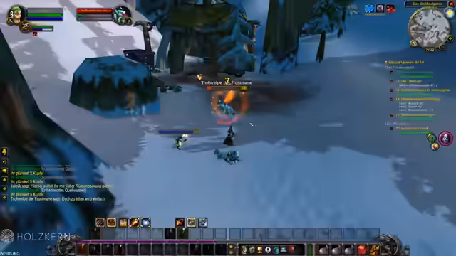 03:37:49Nachdem ein Kopfjäger besiegt wurde, begibt sich der Hexenmeister in die gefährliche Frostmahn-Höhle, um die 'Hülle' zu erforschen. Dabei werden neue Spells wie 'Fluch der Pein' und 'Fluch der Furcht' erlernt und in Kämpfen gegen Trollkopfjäger und Schattenzauberer getestet. Die Gruppe muss strategisch vorgehen, um nicht von Mobs überwältigt zu werden, während sie nach Quest-Gegenständen sucht und die Level-Ziele (9 und 10) erreichen will.