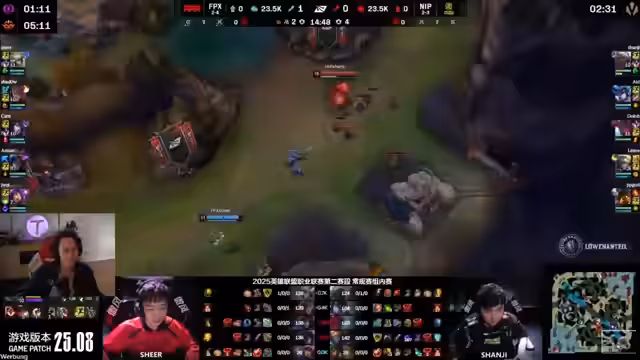 02:01:13In einem langen Drachenkampf nutzt Kanavi sein überlegenes Spielverständnis, um BLG zu überrumpeln. Er entkommt mit dem Leben, während BLG-Mitglieder aufgrund von schlechten Flashes und mangelndem Kommunikation sterben. Der Kampf gilt als Desaster für BLG und als riesiger Sieg für Top E-Sports, die die Seelensicherung und einen riesigen Goldvorteil erzielen.