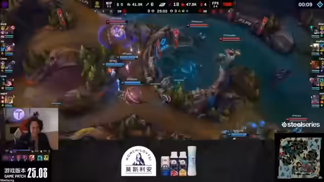 07:48:42In der Mid-Game-Phase konzentrieren sich die Teams auf die Kontrolle wichtiger Objekte wie Drakes. BDS agiert zunächst sehr proaktiv und kann einige Kills sammeln, doch es gibt kritische Fehler. So verlieren sie den ersten Drake nach einem unkoordinierten Engagement. G2 hingegen demonstriert hervorragte Objivkontrolle, nutzt den gelaufenen Teleport von Nukita strategisch, um den Nashor zu sichern und das Blatt zu wenden.