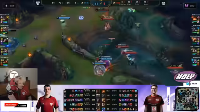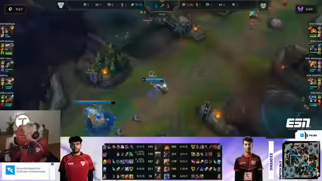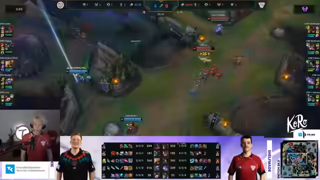 08:55:57Die Anfangsphase des Spiels wird durch einen starken Front-Line-Draft von Coffland dominiert, der zwei robuste Champions für die Front-Line und zwei Damage-Dealer kombiniert. Die Strategie konzentriert sich auf einen Split-Push mit Nah oder einen stärkeren Teamfight mit Orn. Obwohl das 5-Teamfighting schwächer wirkt, wird der Split-Push als deutlich stärker angesehen. Die Analysten bewerten dieses Setup als potentes Mittel, um das Spiel zu steuern, besonders da dasScaling mit Level 16 für Kassante immer härter wird.