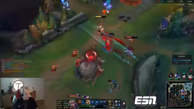 01:48:31Es kommt zu mehreren 3er-Dives auf der Top-Lane, bei denen der Spieler sich in einer schwierigen Position befindet und stark unter Druck gerät. Er kritisiert, dass sein Team trotz guter Double-Kills und Rettungsversuche (wie ein letzter Sekunden-Block) strategische Fehler macht und ihn allein lässt, was zum XP-Gap und letztendlich zum Tod führt, da sein Gegner einen Levelvorteil aufgebaut hat.