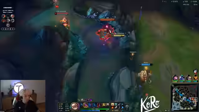 05:26:34Die Konzentration verlagert sich auf die Jungler-Rotation und das Targeting des Herald. Der Streamer plant, seine Form des Champions, die True Damage verursacht, in einem Teamfight einzusetzen. Es kommt zu einem Missverständnis, als er den Gromp-Camp des Gegners klärt, was ihn daran hindert, rechtzeitig zu helfen und eine Entscheidung zu treffen.