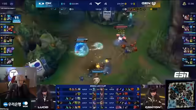 01:54:27Nachdem DK zuvor im Vorteil war, erleidet das Team einen katastrophalen Fehler. Zivot stirbt und somit bricht der gesamte Plan zusammen. Gen.G nutzt diese Gelegenheit, macht einen Elder Draken und kehrt die Situation um. Der Kommentator ist zutiefst enttäuscht von DKs Entscheidung, die Gameplan zu ändern, und betont, dass es ein unglücklicher Domino-Effekt war, der den vermeintlichen Sieg von DK zunichtemachte.