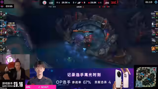 00:09:08Im ersten Spiel zeigt LGD laut Streamer eine starke Performance in den Teamfights, während JDG Schwäcken aufweist, insbesondere bei den Flash-Einsätzen von Scout und der Positionierung von Pace. Allerdings gerät LGD in einen Goldrückstand und JDG kann das Spiel drehen. Der Streamer kritisiert einige Entscheidungen der Spieler, hebt aber auch positive Momente wie die Poppy-Ulti hervor und sieht JDG zurück im Spiel.