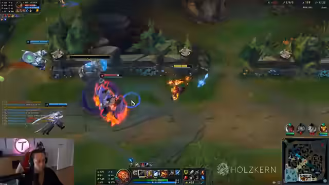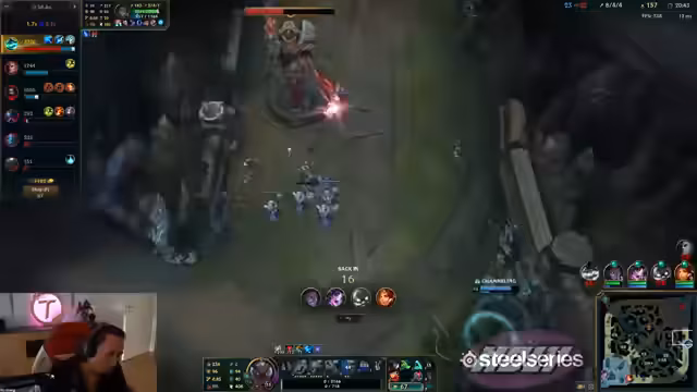 02:23:16Olaf ist im Spiel aktiv und rennt auf Caitlyn zu, die flasht aus dem Kampf. Trotz seiner niedrigen Lebenspunkte gelingt es Olaf, den Schlag abzuwehren. Er blockt einen Stun und erzielt einen Double Knock-Up. Olaf überlebt den Kampf und lebt, während KingIn stirbt. Der Streamer kommentiert den heroischen Einsatz von Pollo, der sich vorspringt und einen wichtigen Knock-Up landet.