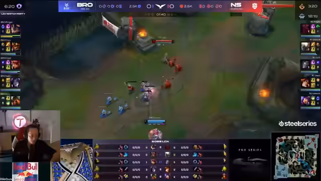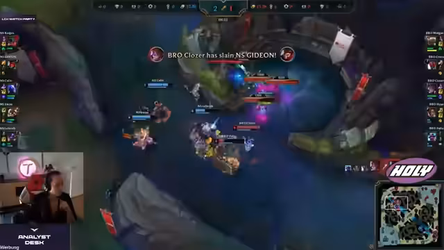 00:08:35Das Spiel beginnt mit einem Early-Game, das Nongshim dominiert. Der Pantheon von Nongshim zeigt eine starke Performance, mehrere Kills und Drachen. Die Broos haben Probleme mit der Makro-Spielweise von Nongshim, die präziser und besser organisiert ist. Die Broos verlieren Game 1 trotz ihrer Stärken in direkten Teamkämpfen, die nie zur Geltung kommen.
