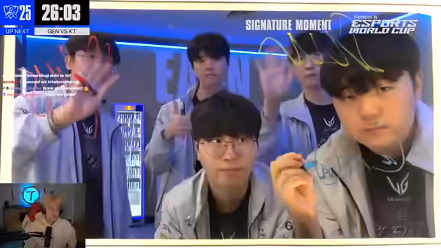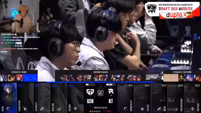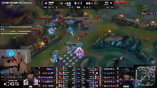 12:22:49Gen.G., das Superteam, das aus den besten Spielern verschiedener Kader aufgebaut wurde und in acht Monaten nur zwei Niederlagen erlitt (gegen T1 und KT), steht vor dem Aus. Die Erwartungen an Chovy als Counter zu Kalista und Herald werden hochgeschraubt. Die emotionale Bedeutung des Spiels wird durch die jahrelange harte Arbeit und die Erwartungen der koreanischen Region unterstrichen. KT gewinnt den Teamfight erneut, und Gen.G. wird gestoppt. Das Ausscheiden von Gen.G. wäre ein 'crazy größeres Upset'. Die Möglichkeit eines 'Telecom War'-Finales zwischen SKT und KT, der ältesten Rivalität im E-Sport, wird als unfassbar beschrieben. Die Watch-Party im LoL Park und der KT-Coach feiern den Sieg. Die Kalista von Dokdam, die gegen Ruler spielt, performt außergewöhnlich gut und ist 'locked in'. Das Halbfinale wird als eines der krankesten aller Zeiten bezeichnet. Die Frage, warum Yorick im Spiel ist und was seine Rolle gegen Ornn sein soll, bleibt offen.