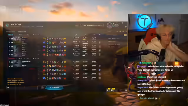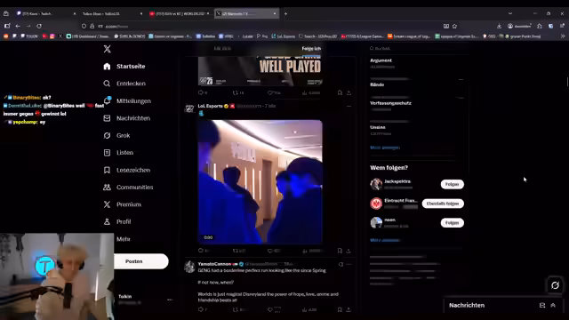 05:16:28Die Worlds des heutigen Tages enden mit der unfassbaren Niederlage von Gen.G. gegen KT. Es wird die Frage aufgeworfen, was besser ist als League of Legends, und der Streamer, seit 13 Jahren E-Sports-Enthusiast, hat nichts Besseres gefunden. Er hofft, seinen Enthusiasmus während der Casts vermitteln zu können und schlägt eine E-Sports-Doku auf Netflix vor, wobei er bestehende Dokus wie die über DOX und GBay99 empfiehlt. Es wird die Einzigartigkeit von League of Legends im Vergleich zu Counter-Strike diskutiert, wobei League durch seinen Aufbau und die Möglichkeit epischer Comebacks als emotionaler und fesselnder empfunden wird. Der Streamer hat 'alles auf T1 gesetzt' für das Finale. Die Diskussion über die Teamfarben und die Popularität von Rot in E-Sport-Teams wird kurz angeschnitten. Der Streamer ist immer noch aufgewühlt von den Spielen und teilt eine emotionale Reaktion von Peter, einem der 'Noodle Boys', der es ins Worlds-Finale geschafft hat. Es wird ironisch angemerkt, dass Peter öfter im Worlds-Finale war als Chovy, was die Absurdität der Situation unterstreicht.