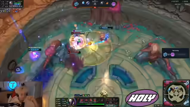 07:30:40Das Spiel entwickelt sich zu einem Desaster, da das eigene Team Schwierigkeiten hat, während der gegnerische Mid-Laner, Cassio, das Spiel dominiert und das Team des Streamers überrennt. Trotz eigener Solo-Kills und guter Skalierung mit Mordekaiser, ist der Streamer gegen Cassio in einer schlechten Position, da sein Champion leicht von ihr gekitet werden kann. Die Cassio wird als extrem gut spielend und '1v9' beschrieben, was dem Streamer das Leben schwer macht. Es wird überlegt, wie man das Spiel noch retten kann, insbesondere durch das Ausschalten von Cassio, bevor sie zu viele Items kauft. Die Frustration über die schlechte Performance des eigenen Teams und die überragende Leistung des Gegners ist deutlich spürbar, was zu einer kritischen Selbstreflexion über die Matchup-Dynamik führt und die Notwendigkeit, Teamfights strategischer anzugehen.