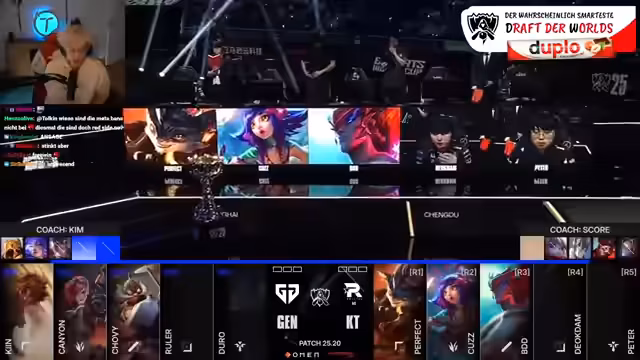 12:29:46Es wird diskutiert, ob BDD aktuell der beste Spieler der Welt ist. Obwohl er in Siegen extrem stark ist, zeigen seine Niederlagen in der LCK, dass er Schwierigkeiten hatte, gegen Top-Midlaner wie Faker, Chovy oder ShowMaker zu gewinnen. Trotzdem hat KT Rolster die notwendigen Siege errungen, um ins Finale einzuziehen. BDD, der jahrelang als sympathischer, aber schwächerer Midlaner im Vergleich zu anderen koreanischen Talenten galt, hat sich nun drei Stufen über seine Konkurrenten erhoben. Seine Leistung in den Playoffs, insbesondere der Sieg gegen Gen.G, unterstreicht seine aktuelle Form und die Möglichkeit, dass dies sein Jahr werden könnte. Die Teamstrategie von KT Rolster, auf Item-Upgrades und Chovis Liandry's zu warten, um Mondo und Ornn zu kontern, zeigt eine durchdachte Herangehensweise, um die entscheidenden Teamfights zu gewinnen. Yorick hingegen wird als nutzlos im aktuellen Spielgeschehen kritisiert, da er kaum Einfluss nehmen kann.