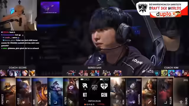 09:57:14Die Analyse des ersten Spiels konzentriert sich auf kritische Fehler, insbesondere Canyon's Dive auf Caitlyn und Chovy's verpassten Flash, der zu seinem Tod führte. Dokdam's defensive Fallenplatzierung gegen Vi wird als „sexy“ und entscheidend für das Comeback von KT hervorgehoben. Sein hoher Damage-Share von 36,6% unterstreicht seine Bedeutung. Trotz eines schlechten Early Games für Caitlyn, die nur 150 Gold vor Corki lag, wurde sie im Late Game „broken“. Das Spiel wird als Achterbahnfahrt beschrieben, die KT's Spitznamen rechtfertigt. Für Game 2 werden die Bans diskutiert: Wukong, Orianna, Azir und Yuumi sind erwartete Bans. Gen.G. entscheidet sich für den Renekton-Ban, was die Strategie für die Midlane beeinflusst. Die Wahl zwischen Yuumi und Azir als Blue Side Ban wird abgewogen, wobei Gen.G. den Azir bannt. Dies führt zu einem wahrscheinlichen Yuumi-Ban von KT, was die Championauswahl für den Jungle und die Midlane öffnet.