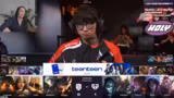 03:04:30Die Teamkämpfe werden mit äußerster Intensität geführt, wobei sich die Kommentatoren über eine fehlende Ultimation von Ahn wundern. Es folgt ein chaotischer Kampf an der Bot-Lane mit zehn Spielern, bei dem Aiming einen Jhin mit gezieltem Blasenthorn eliminiert. Ein Fehlgriff von Wayne, der keinen Blasenthorn-Zauber mehr hat, und ein fehlgeschlagener Versuch von Orn, den Gegner zu töten, führen zu einem unklaren 1-2 Trade.