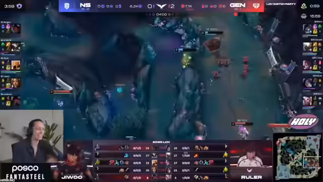 00:00:00Der Stream startet mit einer Analyse des ersten Spiels der LCK Watchparty zwischen Gen.G und Nongshim RedForce. Kommentatoren sind beeindruckt von der überlegenen Leistung von Gen.G, die das Spiel klar für sich entscheiden. Besonders hervorgehoben wird der aggressive Snowball des Teams und die herausragende Leistung von Ruler, der als treibende Kraft agiert. Nongshim RedForce wird als unterlegen dargestellt, da das Team seit dem MSI im Mai kein einziges Spiel mehr gewonnen hat und gegen das Top-Team der Region keine Chance hatte.