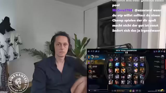 02:12:09Während des Streams berichtet der Kommentator über eine spielerische Gewohnheit, die es ihm ermöglicht, sich bei langen Kommentaren zu beschäftigen. Er erklärt, wie er sich mit einem Ring beschäftigt, ähnlich wie in 'Inception', um sich auf der Kamera ruhig zu verhalten. Gleichzeitig interagiert er mit dem Chat, beantwortet Fragen zur Steuerung der Kamera in League of Legends (Unlock-Cam), zu Maus DPI und analysiert Champion-Abhängigkeiten wie Nasus' Q, was eine persönliche und zugängliche Atmosphäre schafft.