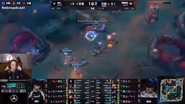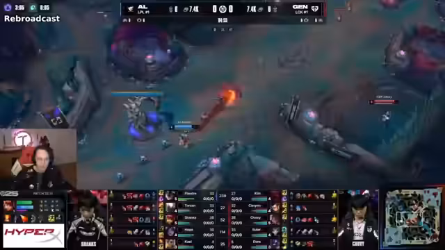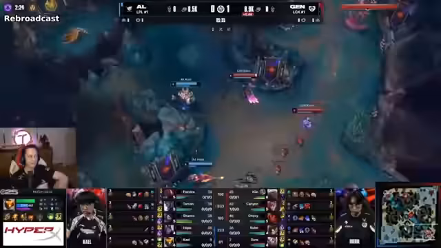 03:39:37Der Streamer analysiert die Item-Wahlen und Builds der Spieler. Gen.Gs Ornn baut einEnding Despair, um sowohl Rüstung als auch Magieresistenz zu erhalten, da das gegnerische Team sowohl physischen als auch magischen Schaden verursacht. Gleichzeitig wird erwähnt, dass das Spiel nicht in ein spätes Spielphase mit Baron Nashor oder Seele ging, sondern dass Animus Legend durch ihre Fähigkeit zu besseren Teamfights das Spiel frühzeitig beenden konnte. Der Fokus lag auf Skirmishes und Snowballing.