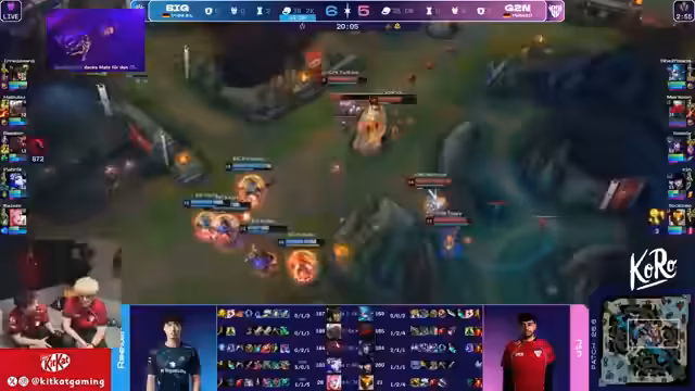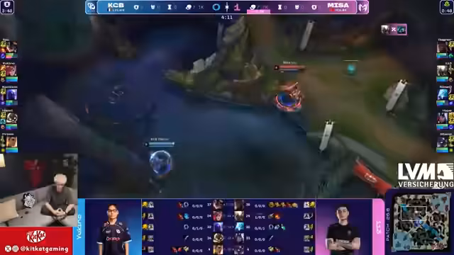 00:00:00Die ersten Teamkämpfe sind intensiv und von taktischen Fehlern geprägt. Ein Schlüsselmoment ist das plötzliche Comeback des Teams KCOP, das trotz eines Rückstands ein 2-0 gegen den Gegner einfährt und damit ins vierte Spiel einzog. Das vorherige Game wurde durch ein krankes 5 zu 0 Teamfight von Vitality dominiert, das komplett einseitig verlief und dem Gegner keine Chance ließ.