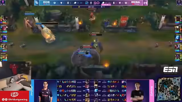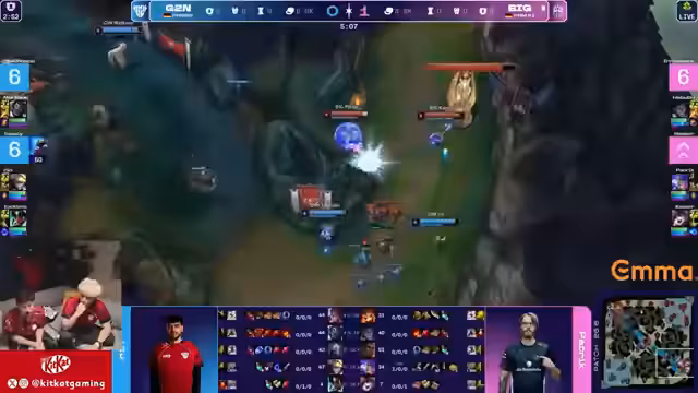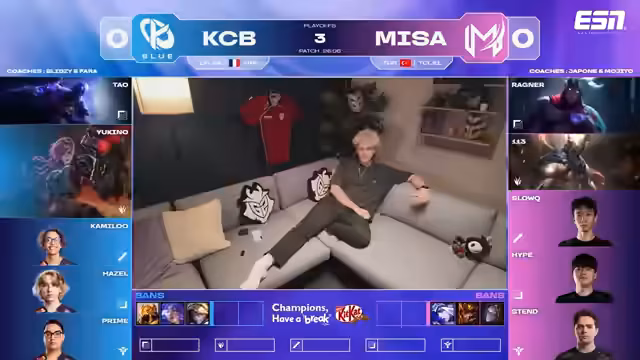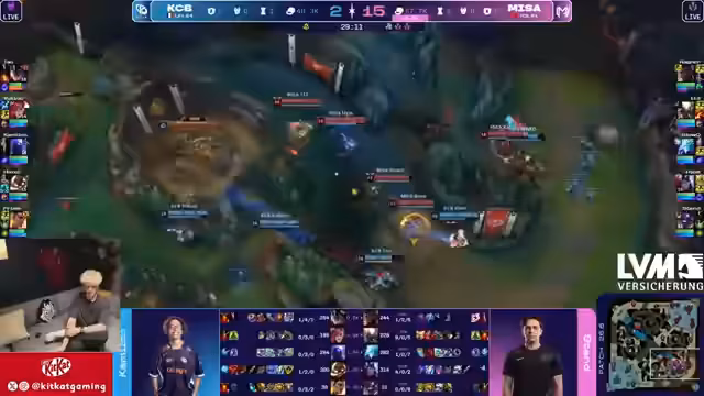00:57:12Der Stream beginnt mit einer intensiven Analyse des laufenden Spiels zwischen KCB und MISA. Kommentatoren diskutieren das dominante Gameplay von Misa, besonders die effektive Nutzung von Champions wie Pantheon und die strategische Entscheidungen wie das Ausspielen des Baron Nashor. KCB wirkt chancenlos und kann kaum etwas gegen den Druck des türkischen Teams ausrichten. Das Spiel gilt als entschieden, wobei die Turbo-Fähigkeit von Jinx im Endspiel den Ausschlag gibt.