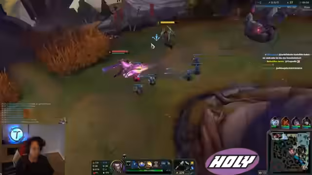01:33:22Der Streamer äußert seine Frustration über ein anstrengendes Spiel, in dem ein 6000 Damage Garen seine Sidebars wegfarmt. Er kritisiert die Tatsache, dass das Solo-Killen des Top-Liners keine Rolle spielt, während der Gegner alle Objectives nimmt und snowballt. Er gibt zu, dass solche Spiele ihn immer etwas sauer machen. Er erwähnt die 10th pick und rät davon ab, Vayne Top zu spielen, da sie ein schlechter Champion ist. Er lehnt die Frage ab, wie er sein Kind nennen würde. Er bedankt sich für ein Sub-Gift und entschuldigt sich dafür, dass er sich gemutet hat, während ein Lied lief. Er spricht über seine Obsession mit kleinen Dingen und seinen Wunsch, das Leben zu genießen. Er fragt sich, ob der Dorans Schild-Trick gut für ihn war und lobt den Hausklaus. Er kommentiert, dass er nicht weiß, wer er wäre. Er freut sich über einen Pryon in der Lane, obwohl er dafür mit Full-HP-Lane bezahlen muss. Er ärgert sich über einen gecancelten Auto-Attack und freut sich über einen guten Auftakt in der Botlane. Er bemerkt, dass Kaiser kein Ege-Skill hat und fragt sich, welche Rune er spielt. Er kommentiert, dass er einmal scheiße zu hoppen, wenn er Hopp hat. Er beschreibt, wie er Kugeln geworfen, sich mit Grasp geheilt und dann noch einen geflasht hat, um Jarvan abzuschrecken. Er kommentiert ein Sub-Gift und ärgert sich erneut über einen gecancelten Auto-Attack. Er bemerkt, dass seine Botlane im 2 gegen 3 getriple-killed wurde und kommentiert, dass Kaiser gerade getrüppelt wurde.