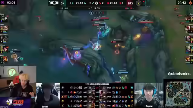03:26:14Die Teams BNK und D-Plus stehen sich gegenüber, wobei BNK eine leicht bessere Ausgangsbasis hat. BNK hat es geschafft, den Drachen abzugeben, was zwar ärgerlich ist, aber nur einen Goldrückstand von 1000 bedeutet. Kayden muss nun mit einem Kollektor gegen Kaiser bestehen, was schwierig wird, da Kaiser in Skirmish-Fights stärker ist. D-Plus hat zwar potenziell besseren Re-Engage, aber BNK kann mit einem gut platzierten Engage den Kampf schnell für sich entscheiden. Die Draft-Phase und das frühe Spiel von BNK werden positiv bewertet. Es wird die Frage aufgeworfen, warum es keine getrennten Patches für Pro-Play und Casual Gaming gibt, was jedoch aus Marketing-Sicht für Riot Games sinnvoll ist, da Pro-Play als wichtiger Werbearm dient und die Vergleichbarkeit zwischen Profi- und Casual-Spiel erhalten bleiben soll.