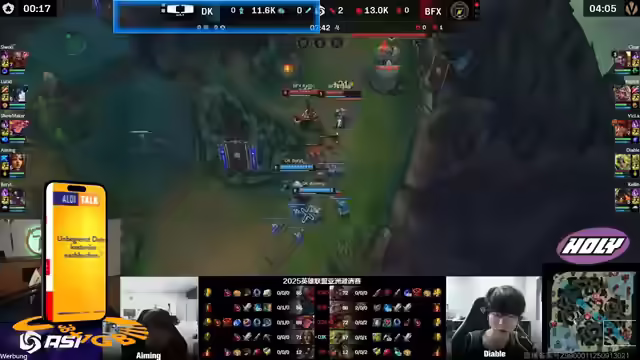 02:44:14Es wird über das Alter und den bevorstehenden Militärdienst gesprochen. Er ist kein Goldmedaillist und muss irgendwann seinen Dienst antreten. Er ist ein 97er-Jahrgang, was ihm noch etwas Zeit verschafft, aber die Situation bleibt ungewiss. Im Spielgeschehen werden Aktionen und Taktiken analysiert, wobei der Fokus auf Teamkämpfen und dem Einsatz von Fähigkeiten liegt. Raptor und sein Team scheinen frustriert zu sein, da sie Schwierigkeiten haben, gegen bestimmte Champions und deren Fähigkeiten anzukommen. Diablo erweist sich als Hoffnungsschimmer, besonders wenn er mehrere Gegner ausschalten kann, was Aiming einen Vorteil verschaffen würde. Das Spiel bleibt jedoch weiterhin knapp, und die Teamzusammensetzung spielt eine entscheidende Rolle. Es wird die Frage aufgeworfen, was Raptor und Kiel sich bei ihren riskanten Aktionen gedacht haben, während Diabe für seine Leistungen gelobt wird. Es wird die Möglichkeit diskutiert, das Spiel durch geschickte Spielzüge und das Sammeln von Kopfgeld zu retten.