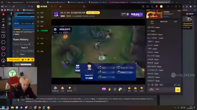 05:14:45Wickler flankt, wird aber gestoppt, was zu Lasted Gold für Beryl führt. Raptor stirbt, weil er nicht den Busch nehmen konnte, was dazu führt, dass die Seele nicht mehr im Besitz des Teams ist und ein Bounty entsteht. Das Gold ist plötzlich unter 2000, was das Spiel wieder spannend macht. Damwon ist zurück im Spiel, nachdem sie 1600 Gold hinten lagen. Raptor ist zu mächtig und erzielt einen Double Kill. Showmaker erzielt einen Triple Kill und Double Kill. Raptor ist der Mann der Stunde mit zehn Kills auf Kiana. Er überlebt gegen Alistar und Bubble und sichert sich die Seele. Es wird diskutiert, dass Trundle Triforce illegal kauft. Raptor wird als MVP des Spiels angesehen. Es wird über die Vor- und Nachteile verschiedener Elemente von Kiana diskutiert, wobei Wasser als das OPste angesehen wird. Lucid klaut den Drachen und opfert sich heroisch. Damwon erhält 218 Gold pro Spieler durch den Drake. Das Spiel ist unwinnable und Silver Scrapes beginnen. Damwon rächt sich mit zwei dicken Bounties. Seri erzielt ein Penta-Kill. Diablo muss in ein besseres Team wechseln. Das Spiel war das knappste bisher, aber es gab Comeback-Momente. Die koreanische Szene hat jedes Jahr neue ADCs, die beeindrucken. Duro spielt schon seit sechs Jahren, während Diablo frisch 17 ist. Der Chat ist sauer, weil sie Diablo MVP nennen, obwohl Raptor das Spiel gecarried hat. Es wird überlegt, wer der ASI-Champion wird. MVP ist meistens ein Popularitätsvote, aber es gibt eine Expertengruppe. Der Pentakill von Diablo war geil. Raptor hat es verdient. Es ist smart für Koreaner, nach China zu wechseln, wenn sie in Korea nicht in einem Top-Team spielen dürfen. Pace hat es geschafft und hat einen Traumstart hingelegt. Es wird über den Tulpa-Laptop geworben. Das Turnier endet auf Silver Scrapes. Die Plus ist Favorit. Worlds startet übermorgen. Es wird gehofft, dass Fanatic nicht letzter wird.