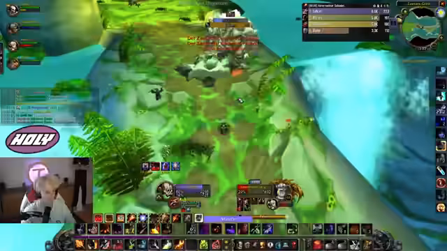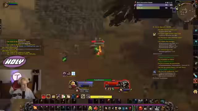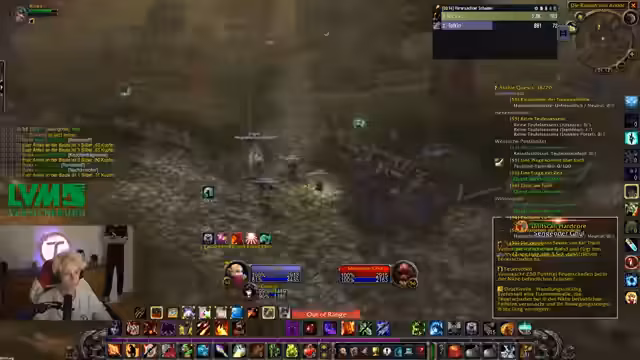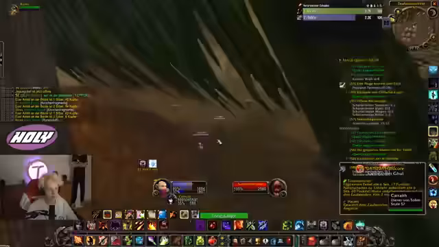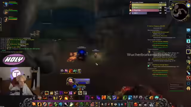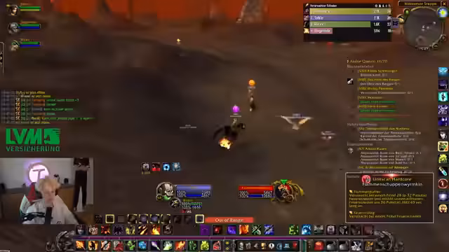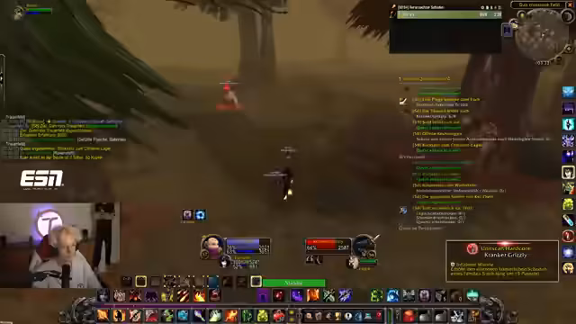 12:57:51In Arathi Highlands beginnen die Streamer eine gefährliche Bond-Quest. Sie spawnen mit einem Temporalversetzer feindliche Parasiten, die unendlich respawnen können, wenn nicht schnell genug getötet werden. Trotz der Gefahr machen sie weiter, auch wenn die Mobs sie verlangsamen. Sie finden heraus, dass sie die Parasiten mit einem speziellen Temporalriss beschwören und bekämpfen müssen, um die Quest fortzusetzen und um sicherzustellen, dass diese nicht weiter respawnen.