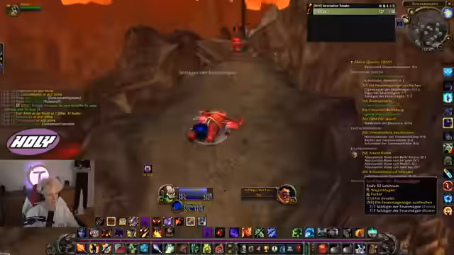 12:25:02Nachdem das Flugverbot aufgehoben ist, reisen die Streamer nach Rotkamm und planen, danach in die östlichen Pestländer weiterzuziehen. Sie nehmen eine Quest bei einem Ausrufer an, der auf der Karte markiert ist. Im Chat entsteht eine Diskussion über die Raids. Der Streamer äußert Zweifel, dass die Gilde Molten Core und Onyxia bewältigen kann, da die Raids schwer sind, die Mitglieder unerfahren sind und das Equipment nicht optimal ist. Er vergleicht es mit League of Legends, wo Koordination entscheidend ist.