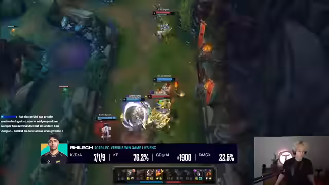 03:59:48Bot-Lane gerät in einen kritischen Fight. Der Fnatic-Mid-Laner Vladi wird von Pobi unter Druck gesetzt und erlebt einen katastrophalen Recall, der ihm nicht nur Gold, sondern auch Flash kostet. Gleichzeitig erhält Rylaq von Navi durch zufällige RNG eine Krabbe auf der Top-Lane. Dies gibt ihm den Level-Vorsprung und eine strategische Karte, um den neutralen Draken zu kontrollieren und aus dem Early Game einen Vorteil herauszuspielen, ohne dass die NAvis-Playmaker bisher agieren mussten.