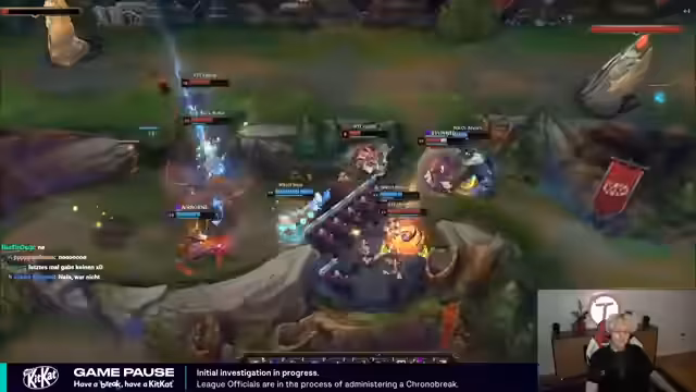 05:22:14Ein potenzieller Bug führt zu einer Spielunterbrechung. Thalias Fähigkeit scheint nicht korrekt zu funktionieren, als Jojo mit Corki agiert. Die Schiedsrichter prüfen die Situation, und nach einer kurzen Pause wird ein Chrono-Break angeordnet. Das Spiel wird zum Zeitpunkt des Bugs zurückgespult, um die Situation fair neu zu bewerten und einen unfairen Vorteil zu verhindern.