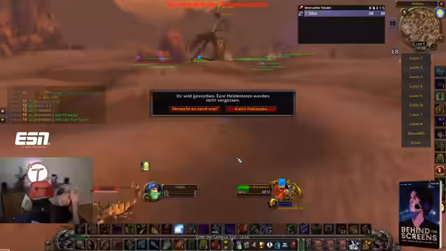 01:51:43Ein wichtiger Bosskampf endet katastrophal. Obwohl die Strategie klar war, stirbt Streamer zusammen mit seinen Materialien, weil er den Petri-Spell nicht rechtzeitig einsetzt. Die Heilung des NPC scheitert, was zum Tod des Kapitäns führt. Streamer zeigt große Enttäuschung und macht sich selbst Vorwürfe, da der Verlust der Mats für die gesamte Gruppe schwerwiegend ist. Der Fehler wird analysiert und verschiedene Lösungsansätze wie das Nutzen von Petri oder besseres Pet-Management werden diskutiert.