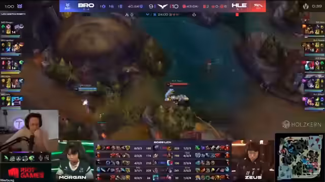 01:38:25Der Streamer kommentiert das Spiel live und hebt wichtige Schlüsselmomente hervor, wie etwa frühe Kills und Objective-Kontrollen. Er analysiert die Performance der Spieler und erklärt, wie bestimmte Entscheidungen das Spiel beeinflusst haben könnten. Besonderes Augenmerk liegt auf der Botlane, die als besonders stark für die Bros beschrieben wird.