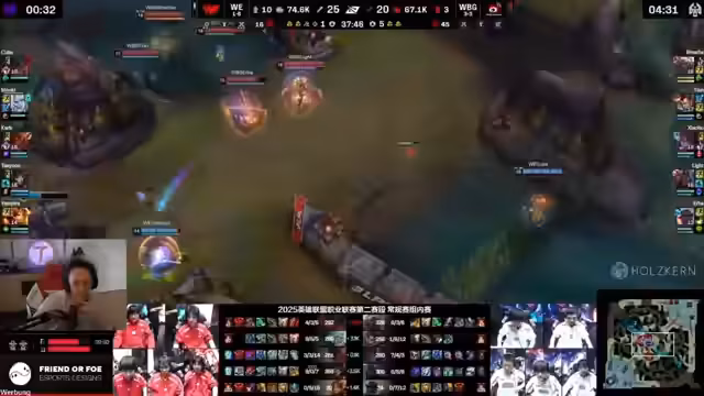 03:18:04Die Analyse konzentriert sich auf das aktuelle Spiel zwischen Weibo Gaming und HLE. Es wird eine komplexe Situation beschrieben, bei der Weibo versucht, den Baron zu sichern und gleichzeitig strategische Entscheidungen trifft. Der Streamer hebt die starke Performance von Mr. Breathe auf Ambessa hervor und beschreibt die taktischen Manöver beider Teams. Nach einem erfolgreichen Backline-Dive von Weibo Gaming endet das Spiel mit GG. Die Teams sichern sich wichtigeobjekte, und es werden Fehler wie der Turret-Bug erwähnt, der von Riot Games noch nicht behoben wurde.