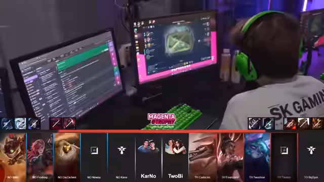 09:09:02Die Aufmerksamkeit verlagert sich auf die Draft-Phase des Finalspiels. Der Streamer analysiert die Picks und Bans und spekuliert über die möglichen Strategien der Teams. Er vermutet ein Duell auf der Botlane zwischen den Captains Kroko und Kani. Die Drafts werden sorgfältig analysiert, insbesondere die Wahl von Champions wie Mundo und Ornn, die als sehr 'treu' und strategisch bedeutsam für den Ausgang des Spiels gelten.