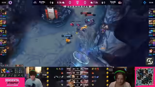 06:54:26Die Dynamik des Spiels ändert sich plötzlich, als ein 2-gegen-1-Szenario im Jungle entsteht. Bigspin glänzt mit einem cleveren Play und kann dabei Kani vom gegnerischen Team angreifen. Kommentatoren und Zuschauer sind von diesem Move überrascht und sehen eine mögliche Wende. Der erste Kill geht an das Team von Noe und Kani, was ihre Moral und das Spielgeschehen beeinflusst.