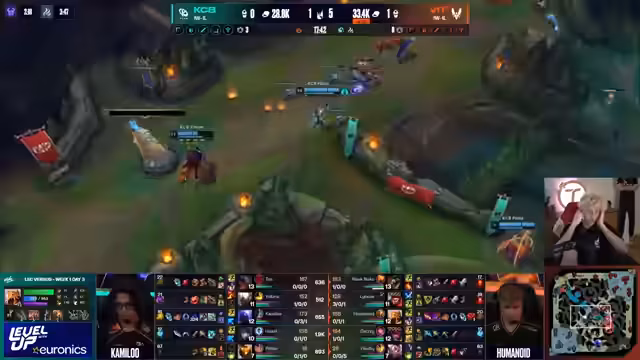 02:48:15Nach einer kurzen Ablenkung durch den Support-Bard legt der Fokus auf die Mid-Lane. Der Sprecher bezeichnet Humanoid und Nemesis als die beiden schwächsten Mid-Laner der Liga und stellt deren Leistung in Frage. Er gibt an, dass Nemesis einen anderen Playstyle in der NLC hatte und vermutet, dass Nemesis' Form nachgelassen hat. Bei Humanoid wirft er vor, dieser spiele nur noch für den Gehalt und habe keine Leidenschaft mehr. Camille wird hingegen als Fehltus gelobt, der in jeder Lane Präsenz zeigt und gute Controlling-Fähigkeiten demonstriert.