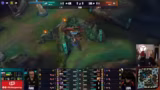 04:23:36Beide Teams befinden sich in einem langen mexikanischen Standoff, bei dem sich niemand traut, Ressourcen wie Drache oder Nashor anzugreifen. Der Spieler Jun trifft eine schlechte Entscheidung, indem er einen Full-HP Mundo angreift, was in einem für Giant X katastrophalen Teamfight endet. Dieser Fehler führt dazu, dass Reddix alle Plays zeitgleich durchführt und das Game vorantreibt.