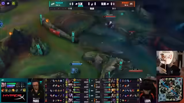 Im Mittelpunkt des Duells stehen die Drafts der beiden Teams. NAVI setzt auf einen aggressiven Assassin-Fokus mit Akali und Qiyana, während Fnatic auf die Skalierung mit Azir und Corki setzt. NAVI nutzt seine Vorteile im Early Game und sichert sich einen massiven Goldvorsprung. Fnatic sieht sich in einer schwierigen Lage, findet aber durch exzellente Teamfight-Execution und strategisches Management der Objekte einen Weg zurück und dreht das Spiel auf.