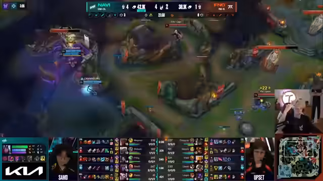 01:51:08Das Spielgelände wird zum Schlachtfeld. In einem Teamfight an der Drachengrube zeigt sich die Dominanz von NAVIs Assassinen. Rakar und Akali finden perfekte Winkel für ihre Ultimate-Fähigkeiten. Während Imperius (Ryze) als Tank-Champion unglücklich stirbt, gelingt es Meiko, einen Solo-Kill an Imperius zu erlangen und sich einen Goldvorteil zu sichern. NAVI kontrolliert das Geschehen und baut ihren Vorteil kontinuierlich aus.