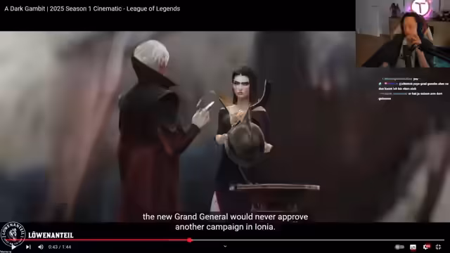 07:13:57Es wird die Erwartung geäußert, dass die Geschichte sich um das Retten und Beschützen von jemandem drehen könnte, ähnlich wie bei einer Tochter. Bisher ist das Ziel, warum alle umgebracht werden, noch unklar. Es wird erwähnt, dass Personen ohne Passierschein verhaftet und verurteilt werden. Die Spielfigur heißt Joel und soll Ellie rausschmuggeln. Ellie soll zu einem Nordtunnel gebracht werden, wo auf Marlene gewartet werden soll. Es wird angedeutet, dass Ellie eine Art Ware ist, die geschmuggelt wird, aber die Spielfigur plant, sie zu beschützen. Es wird ein Bezug zur eigenen Tochter gezogen, die vor 20 Jahren verloren wurde. Es wird überlegt, ob Ellie die Welt retten kann. Die Spielfigur hört Schüsse und vermutet, dass es sich um die Fireflies handelt. Es wird ein Trailer zu League of Legends gezeigt, der eine düstere Atmosphäre hat. Es wird spekuliert, dass LeBlanc das neue Gesicht von League of Legends werden könnte. Der Trailer teasert die Noxus-Invasion von Ionia an. Es wird die Hoffnung geäußert, dass die Geschichte von Yasuo, Riven, Irelia und Swain erzählt wird. Es wird erwähnt, dass Arkane komplett canon war und neue League of Legends Lore hinzugefügt hat. Es wird die kluge Weiterentwicklung der Szenen durch Riot Games gelobt. Die Stimmung des Trailers wird als düster beschrieben, was für die Zielgruppe Mitte 20 passend ist. Es wird spekuliert, dass Atakan in der nächsten Season bleiben wird. Es wird die Hoffnung auf Zolani geäußert. Es wird erwähnt, dass die Traxe gerne ein YouTube-Video daraus machen kann. Es wird vermutet, dass eine Jacke benötigt wird, um über den Strache-Dart zu werfen. Ellie wird als krass bezeichnet, da sie etwas alleine kann. Ellie wirkt älter als die eigene Tochter, was auf die Umstände zurückgeführt wird. Es wird erwähnt, dass Ellie 14 ist und ihre Eltern tot sind. Es wird angedeutet, dass Ellie zur Schule gehen sollte, aber lieber zu den Fireflies geht. Es wird erklärt, dass ein Pilz die Menschen befallen und zu Zombies gemacht hat. Es wird spekuliert, was die Fireflies von Ellie wollen. Es wird vermutet, dass Ellie ein Medizinmittel ist, das die Welt retten kann. Es wird die Frage aufgeworfen, in welches Land die Grenze führt. Es wird vermutet, dass Ellies Vater ein führender Wissenschaftler ist und ihr Blut das Sekret enthält, das Spinnen mutieren lässt.