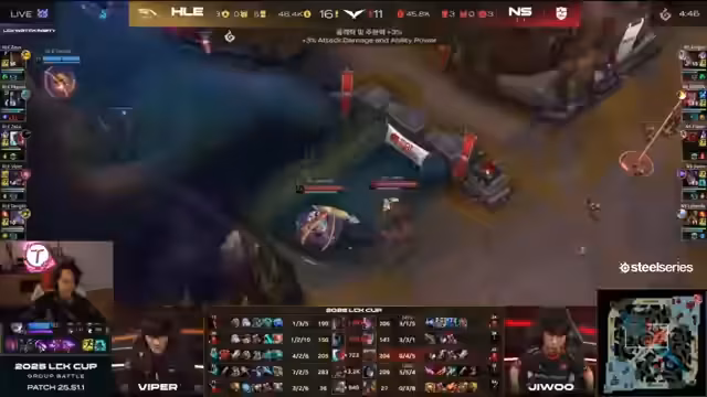 04:07:17Das aktuelle Spiel wird als 'sehr low elo' bezeichnet, da sowohl First Blood als auch Drachen ungestört genommen wurden und Atakan anstelle von Seele gewählt wurde. Es wird festgestellt, dass das Team, das ein Ziel startet, den Kampf verliert. Viper verteilt zwei Headshots und tötet damit Jeevo und Corki. Caitlyn, die das gesamte Mid-Game übersprungen hat, wird als 'crazy' bezeichnet, da sie im Late-Game sehr stark ist und über 4,5 Items mit Seele verfügt. Atakan wird als Köder angesehen. Es wird erklärt, dass beide Atakan-Varianten oben und unten spawnen können, abhängig davon, wo mehr gekämpft wurde. Da das aktuelle Spiel ein 0-0-Spiel ist, sollte es mehr Toplane spawnen. Es wird vermutet, dass Armin das Spiel mit Seele und der starken Phalanx aus Caitlyn und Azir gewinnen wird. Doran war in der letzten Partie von National sehr hart am Choken gewesen. Doran ist mit wenig Ressourcen auch einfach mehr fein als Zeus als Spielertyp. Zeus ist in mehr Games ein X-Faktor. Zeus ist schon der bessere Spieler auf Top-Lane. Er hat den höheren Peak.