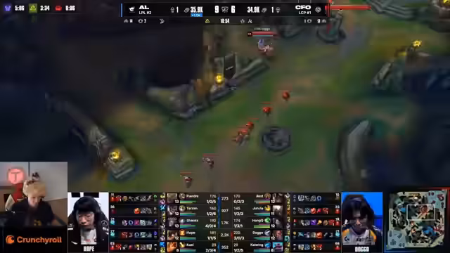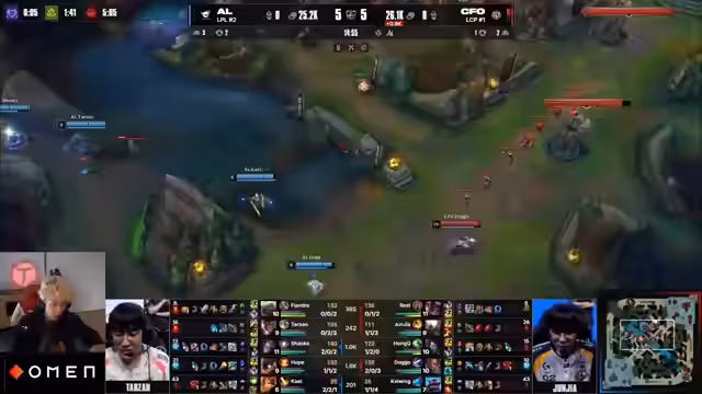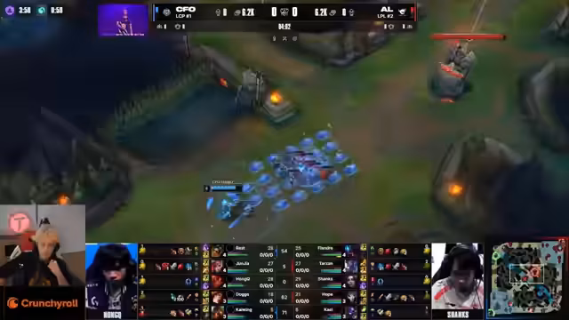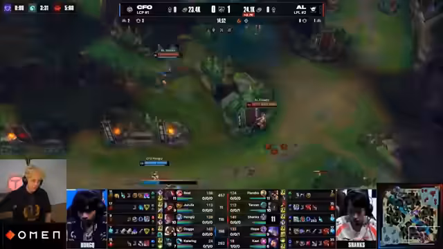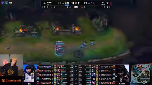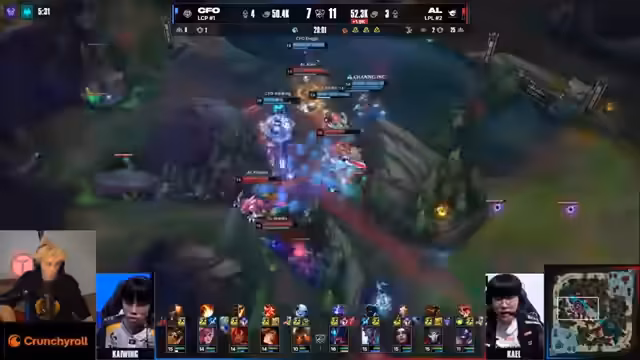 11:13:39Akali, gespielt von Honkyu, zeigt eine beeindruckende Sustain durch Second Wind und Doran's Shield, was sie schwer zu töten macht, selbst wenn sie low ist. Honkyu hat Akali bewusst gedraftet, um Oriannas Leben zur Hölle zu machen, insbesondere ab Level 6, wenn Akali im Drachenkampf besser agieren kann. CFO versucht einen Bot-Lane-Dive, der jedoch mit drei Flashes für einen Kill teuer erkauft wird und China zugutekommt, da sie keine Minions verlieren und die nächste Wave pushen können. Flandre bleibt lange auf der Wave, was Anyone's Legend die Möglichkeit gibt, die Flashlosigkeit von Lucian-Braum zu bestrafen. Das dynamische Lane-Assignment führt dazu, dass Lucian-Braum ständig die Lanes wechseln, um Ganks zu vermeiden. Ein Fehler von Six, der Base geht, anstatt Top-Lane zu bleiben, führt dazu, dass Anyone's Legend den Drachenkampf verliert und CFO einen weiteren Gold- und Drachenvorteil erzielt. CFO zeigt ein besseres Verständnis für Tempo und gewinnt den Teamfight, trotz einiger Misplays.